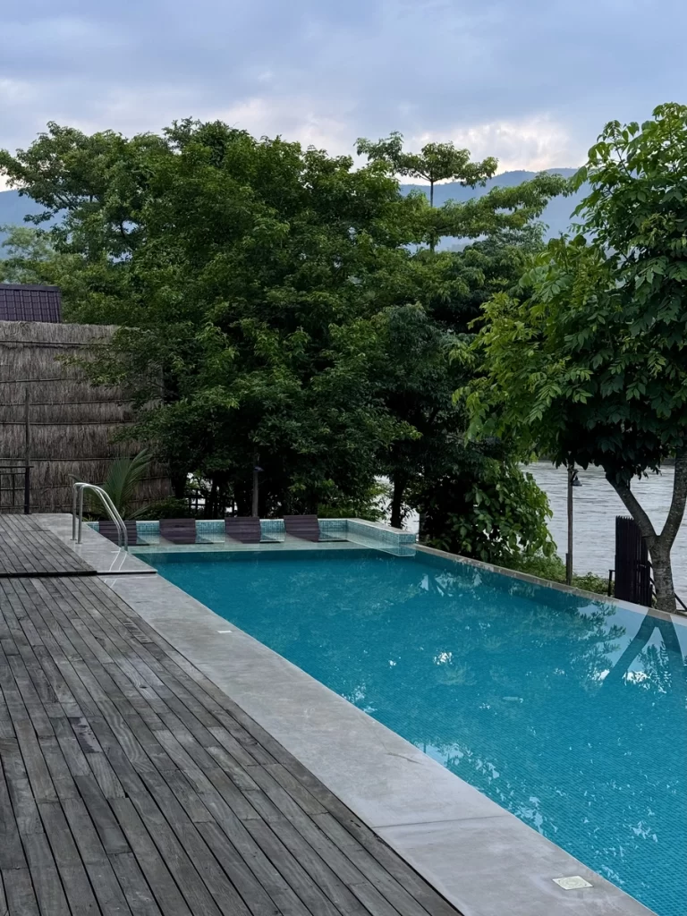 Immerse yourself in luxury at our breathtaking pool, where the water seems to merge with the horizon. Perched on the edge of our resort, this architectural marvel offers panoramic views of the meandering river and lush landscape beyond.