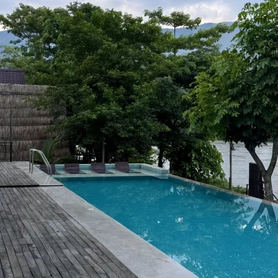 Perched above, this room grants guests panoramic views of the tranquil river, creating an atmosphere of peace and serenity.